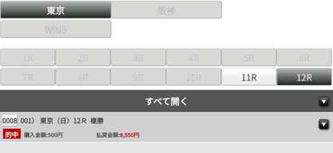 東京12Rは昨年1着⑨人気だったので⑨人気の単勝に賭けます。