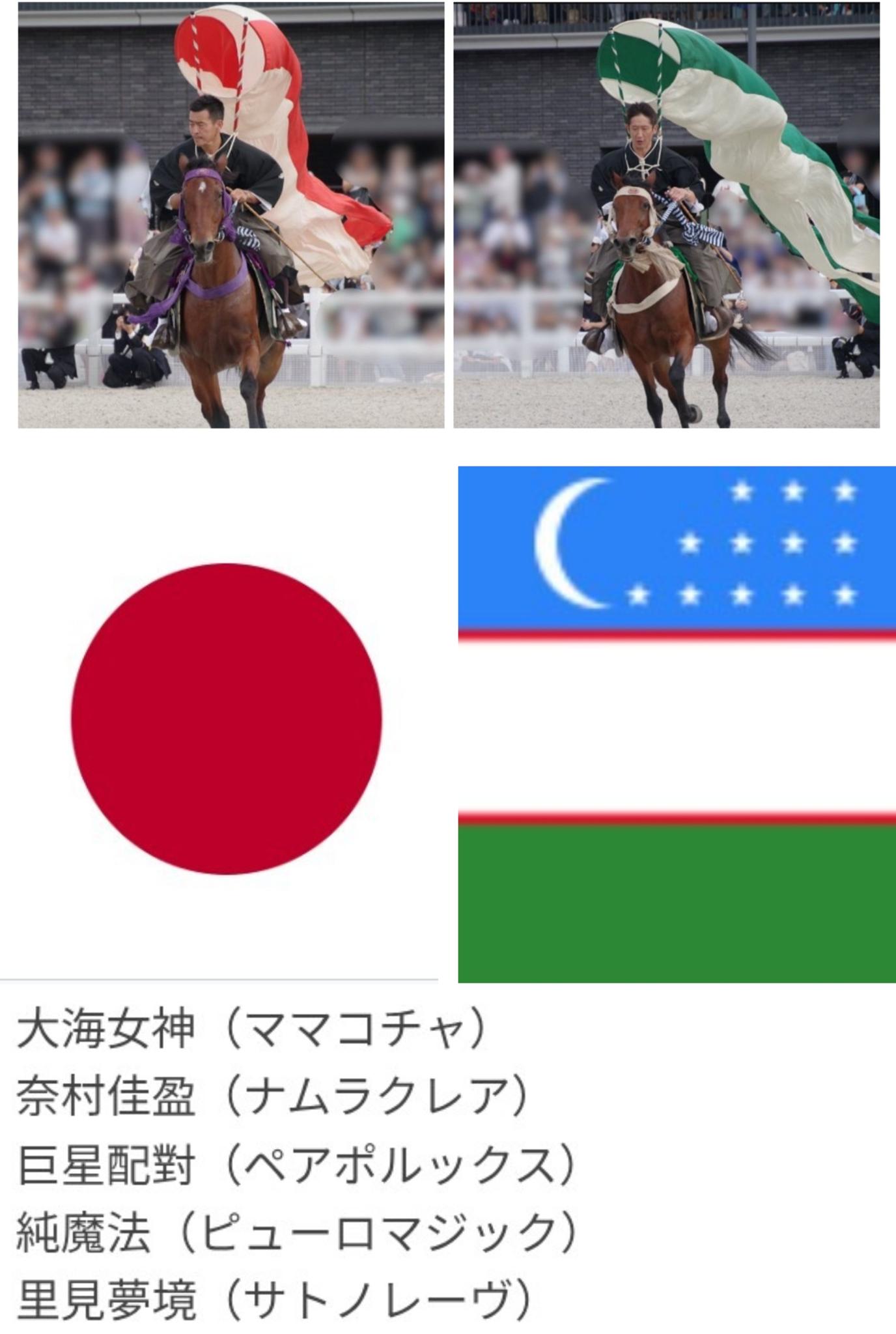 で、その両国の国旗ですがなんとなく昨日の愛馬の日の「母衣引」に色使いが似ています。