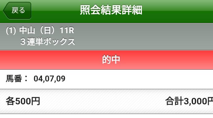 馬連と三連複がダブってゲット。欲張りワイドは惜しかったけど3連単も久しぶりにゲット。