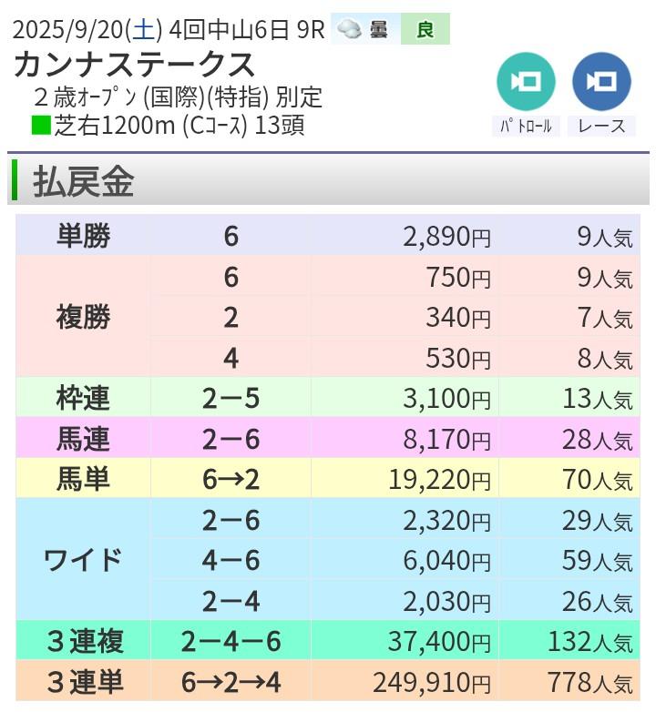 おめでとうございます!メインの神戸新聞杯も3連単的中ですね!