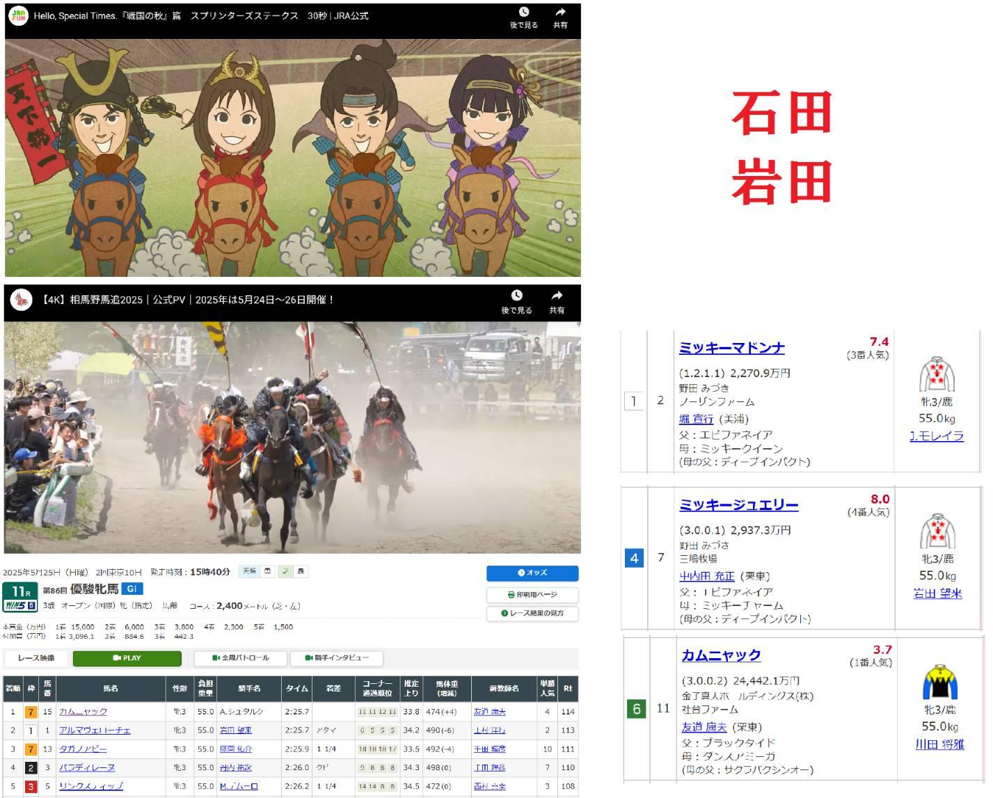 関ヶ原Sの8枠の配置が、【石田】【康】【松平】でしたので。