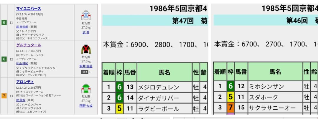 ・1985年 菊花賞 ミホシンザン【6枠⑫番→5枠⑪番】の決着。