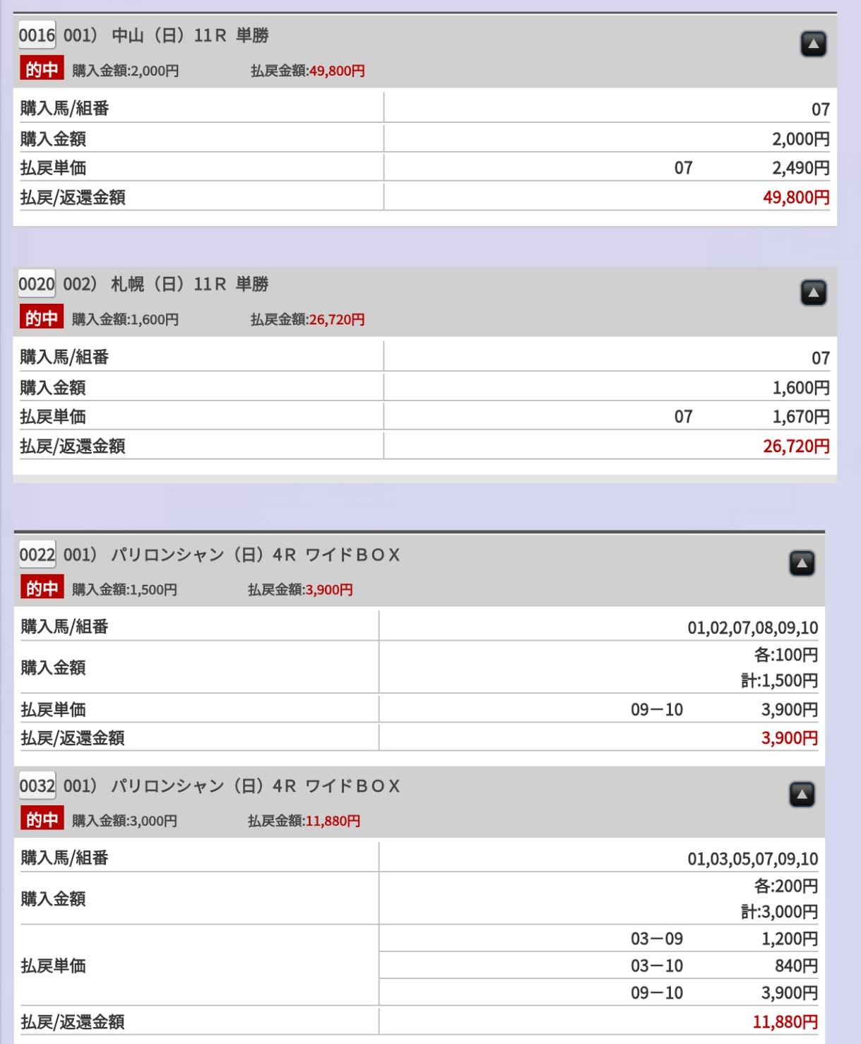 土曜。松本好雄氏の馬は8つのレースに9頭が出走して最終の札幌12R⑦人気1着。