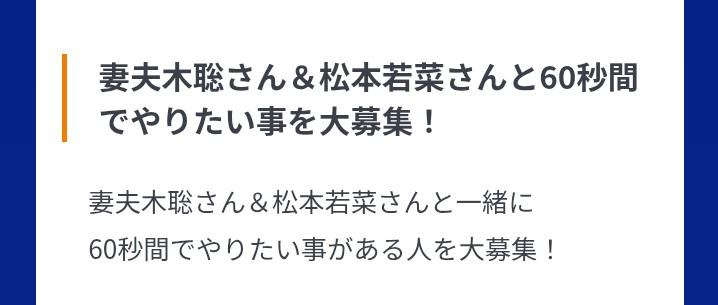佐藤浩市さん松本若菜さんのプレゼンターは明らかに「ザ・ロイヤルファミリー」からの番宣兼ねての来場だと思われますし、昨晩放送された「モニタリング」においては妻夫木聡さん松本若菜さんと【60秒】やりたい事を大募集!というのがありました。