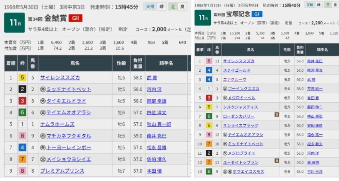 結果的に金鯱賞⇒宝塚記念のスズカの居る枠の決着。