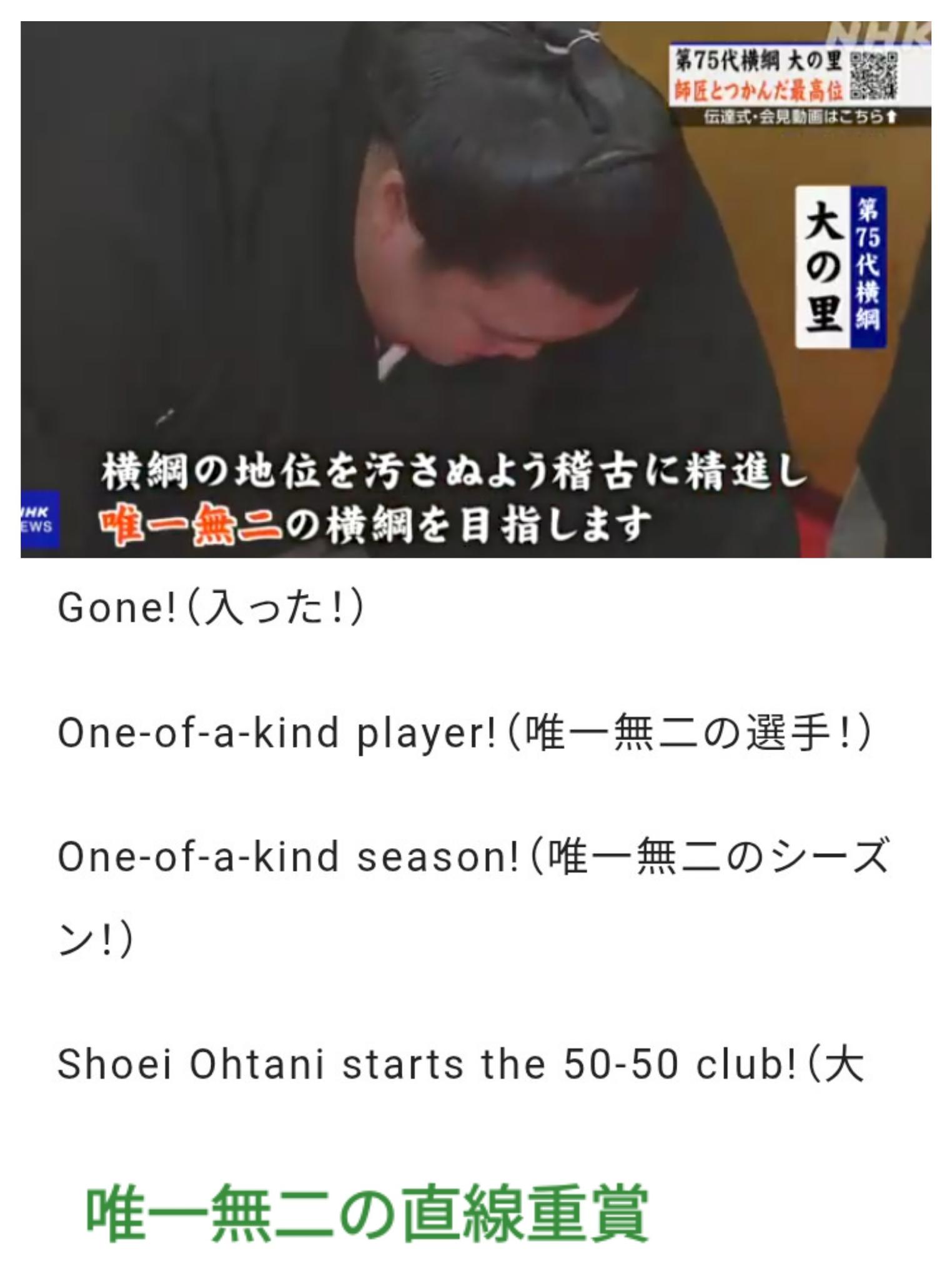 大の里の「唯一無二」は知りませんでした。参考にします。
