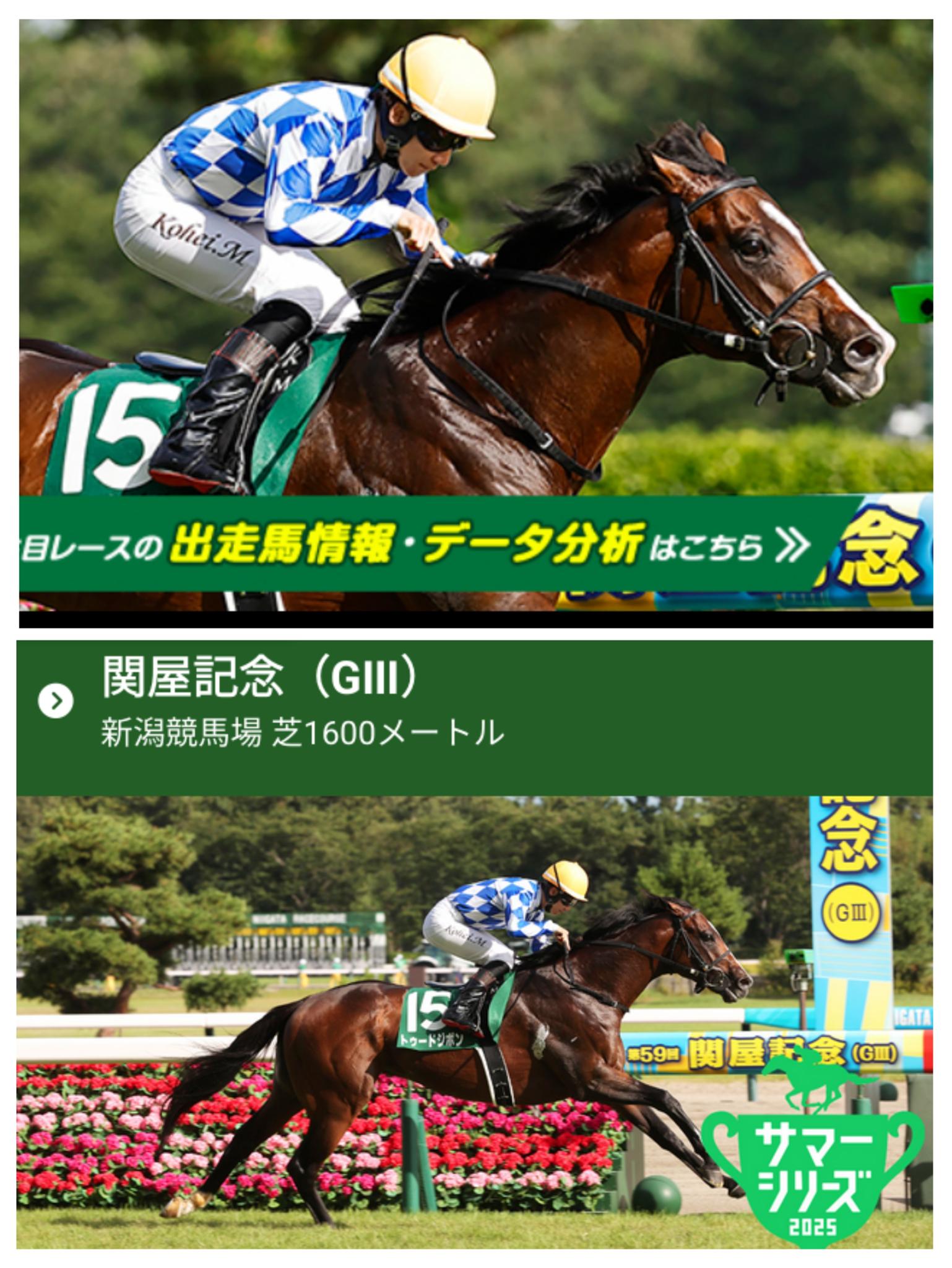JRA-VANで【武豊騎手とオグリキャップ】を強調し、トップページで関屋を隠し【〇〇記念】を強調した意図。
