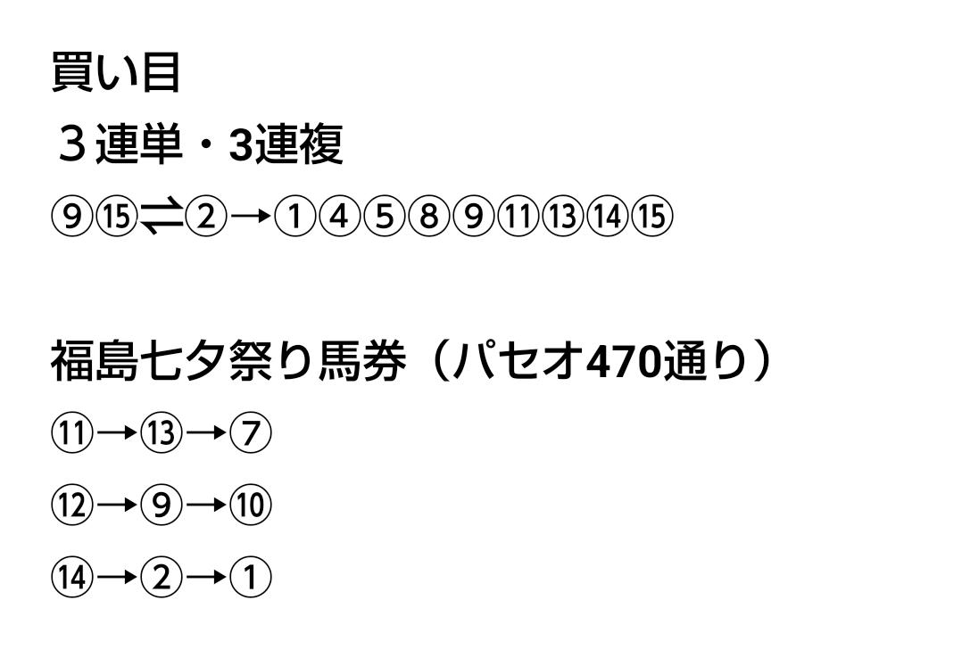 「函館記念」の(枠5→3→7,馬8→3→12)を気にしておきたい。 もしつながれば「福島記念」「新潟記念」にも参考になりそう。