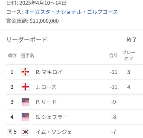ゴルフのマスターズで北アイルランド出身である「ローリーマキロイ」が勝ち
