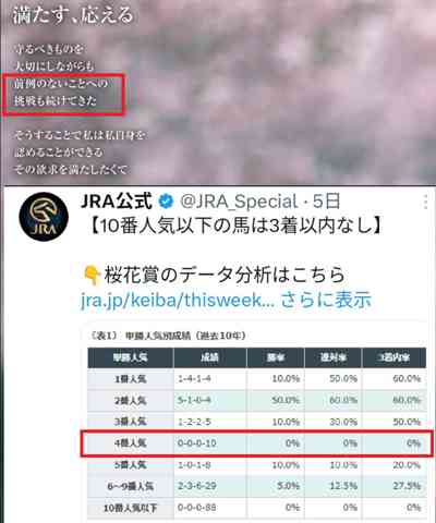 『前例のないことへの挑戦』⇒JRA公式Xより。【4番人気 0-0-0-10】