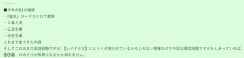 (もったいぶってスミマセン。皐月賞の枠順が想定通りならそこでお伝えします。)