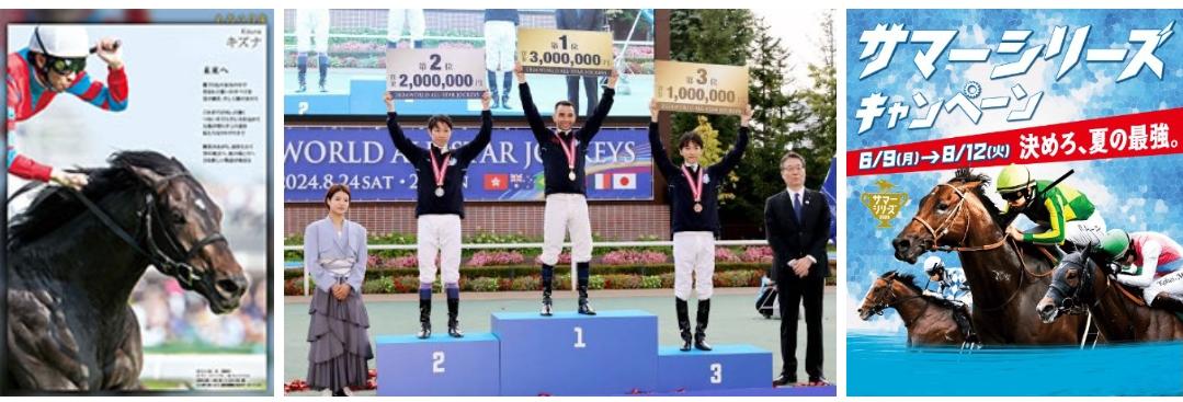 モレイラ騎手の『誘ってくれてアザッス』。表彰台の三騎手。