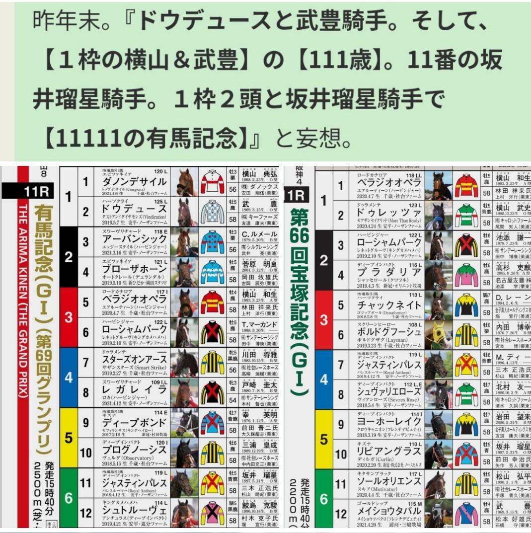 宝塚記念はヘッドラインの名馬でした。ヘテンドールの伝統と同じでした。隣のソールオリエンスのエールでしたのでテッキリ、ソールオリエンスかと思いました。去年の馬番を使いました残念!