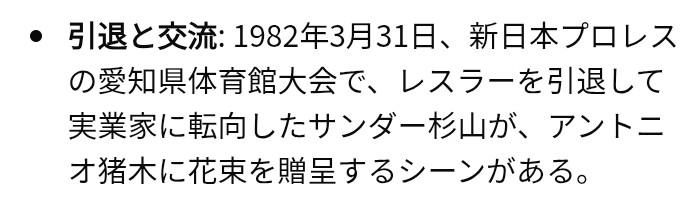 1982年3/31の新日本プロレスの愛知県体育館に【サンダー杉山】が来場してますね。この試合生観戦した記憶があります。