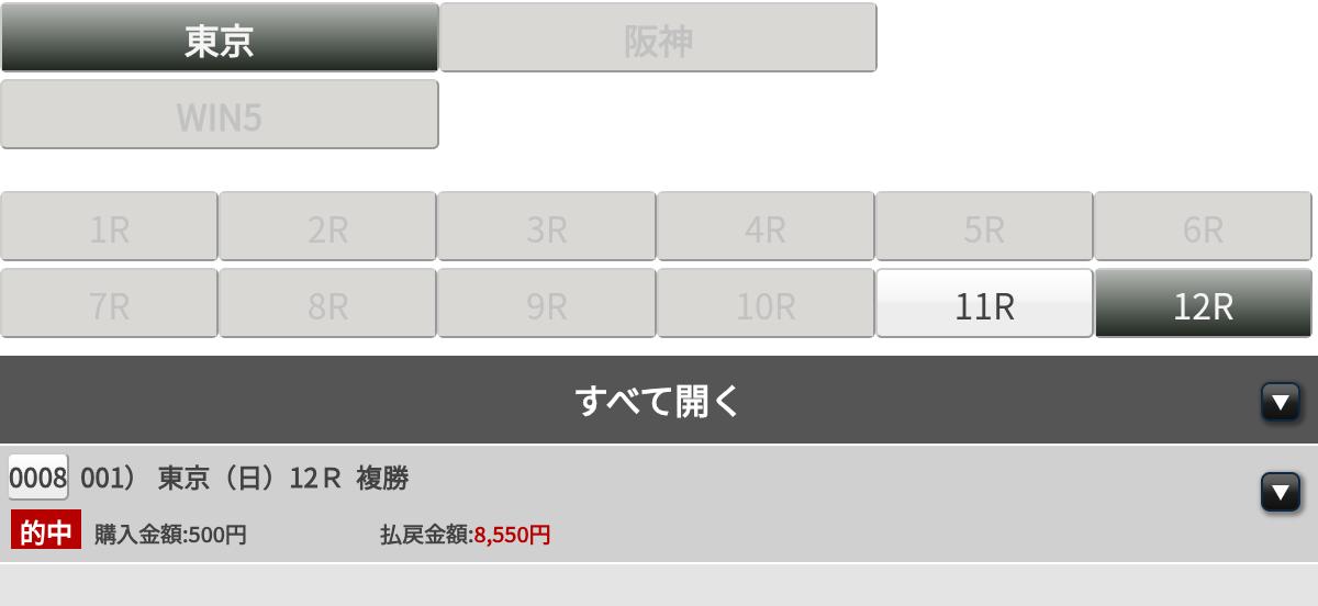 東京12Rは昨年1着⑨人気だったので⑨人気の単勝に賭けます。