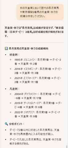 タスティエーラの話ですが、あまり過信は出来ませが、『ドウデュースの翌年のダービー馬』『昨年の天皇賞秋でドウデュースの2着』【ドウデュースを引継ぐ者】という点でも該当しています。