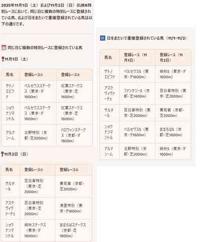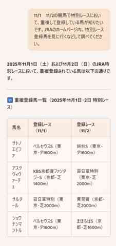 同じ日に重複登録している馬も挙げてもらったけど漏れてる気もします。