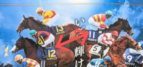 おそらくコレが最後ですね。サインあるあるさんが掲示された「12頭」まとめて写っているポスターから切り取って使っているようですけど…「大阪杯」と「オークス」だけ逆向きですので…おそらく