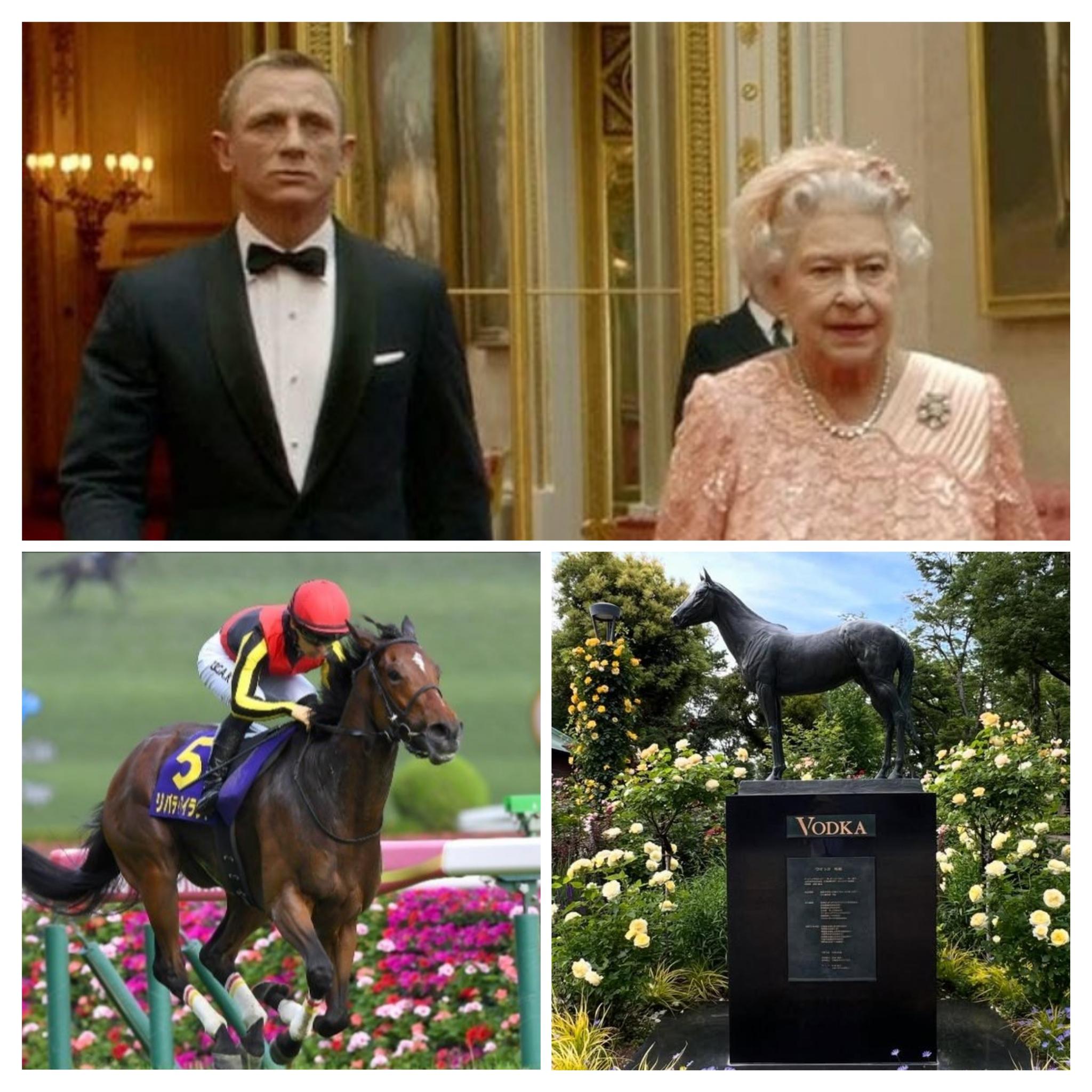 画像はピンクのドレスの故エリザベス女王と護衛する当時のジェームズボンド