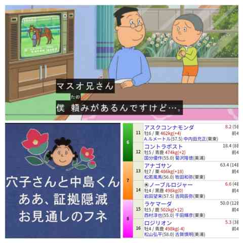 「サザエさん」からの来週の「アナゴさんと中島くん」から先週土曜日の京都メインレースの「7枠⑬番」が気になっでますので…