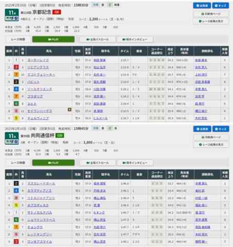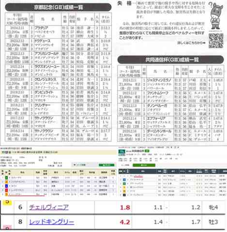 京都記念と共同通信杯の【成績一覧】。