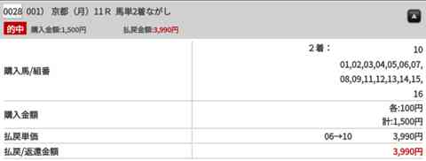 二百円プラスで終えても仕方ないので11番の単複を買って終わります。