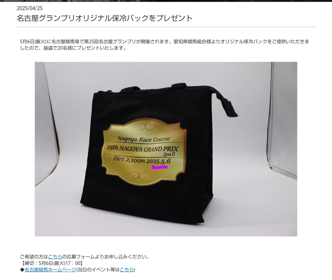 金シャチ競馬カレンダーのプレゼント