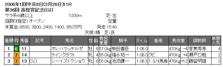 土曜名馬座は、オレハマッテルゼ 2006年 高松宮記念優勝馬 6枠11番
