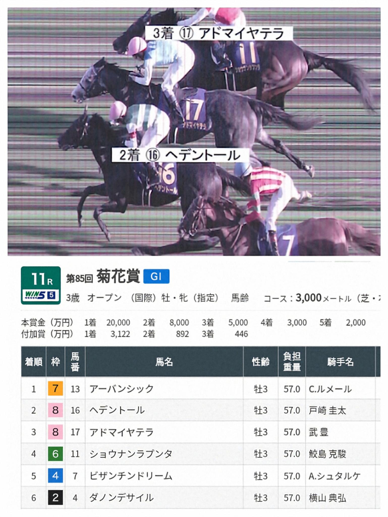 今回は「はな」の付くレース例えば菊花賞を、また冠名が中国由来の言葉であることを示唆したようです。
