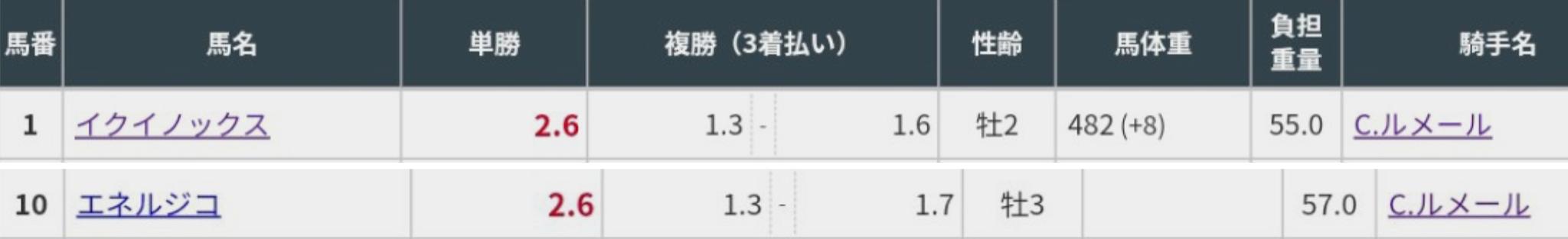 基本的には⑧池添と⑩ルメールから