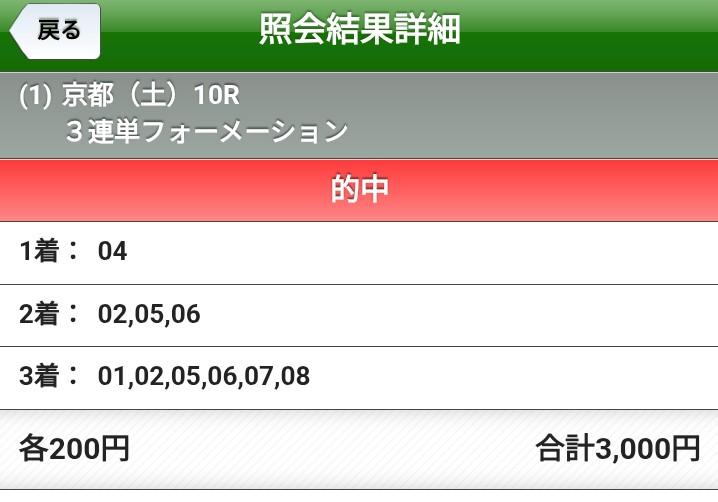 (カキコミした他に午前中に買った騎手が2鞍のみの騎乗だったのでもう一度買った複勝が的中)