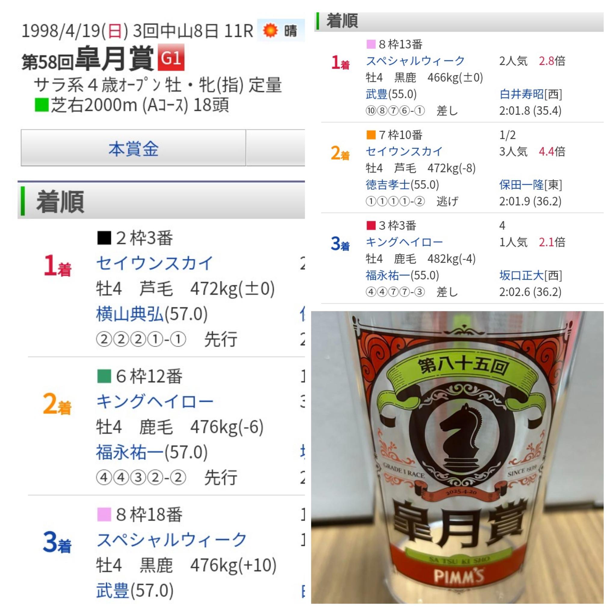 セイウンスカイの皐月賞は【逃げ】では無いのでその判断は悩みどころです。皐月賞に限り【逃げ】よりも【4角先頭】、もしくは【一緒に映るキングヘイロー】が私には気になる存在です。
