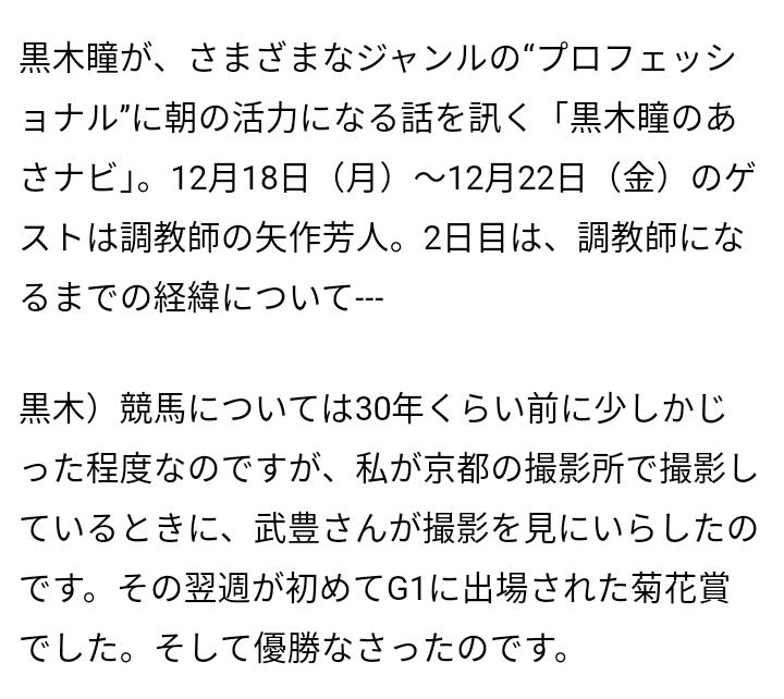 2023年の黒木さんのラジオ番組に矢作調教師が出演されて「武豊」の話題に