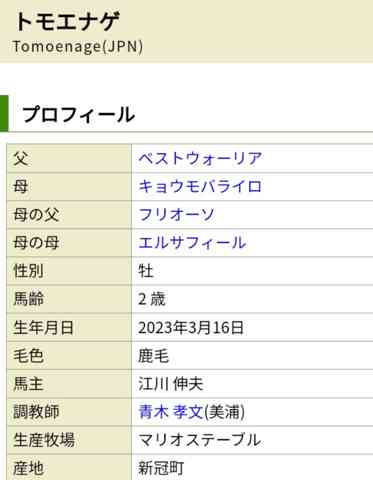 【トモエナゲ】…大した血統でもないのにすでに登録されていて…でも当然2歳なんだから出走するハズも無いし…