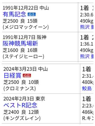その年の有馬記念優勝馬(2着ヒシアマゾン)