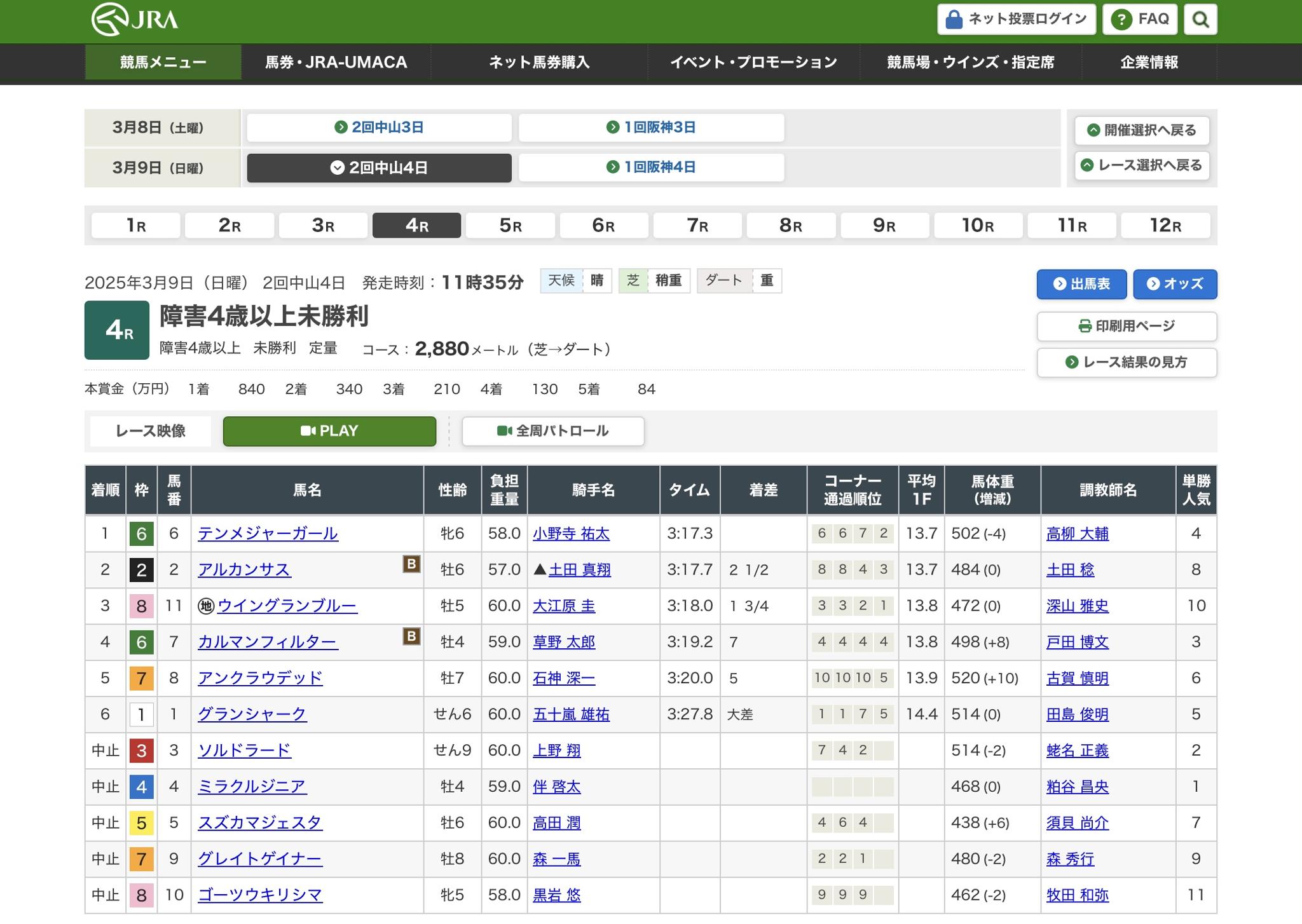 明日は珍しく中山グランドジャンプ参加しようかと、先日落馬された馬番を。