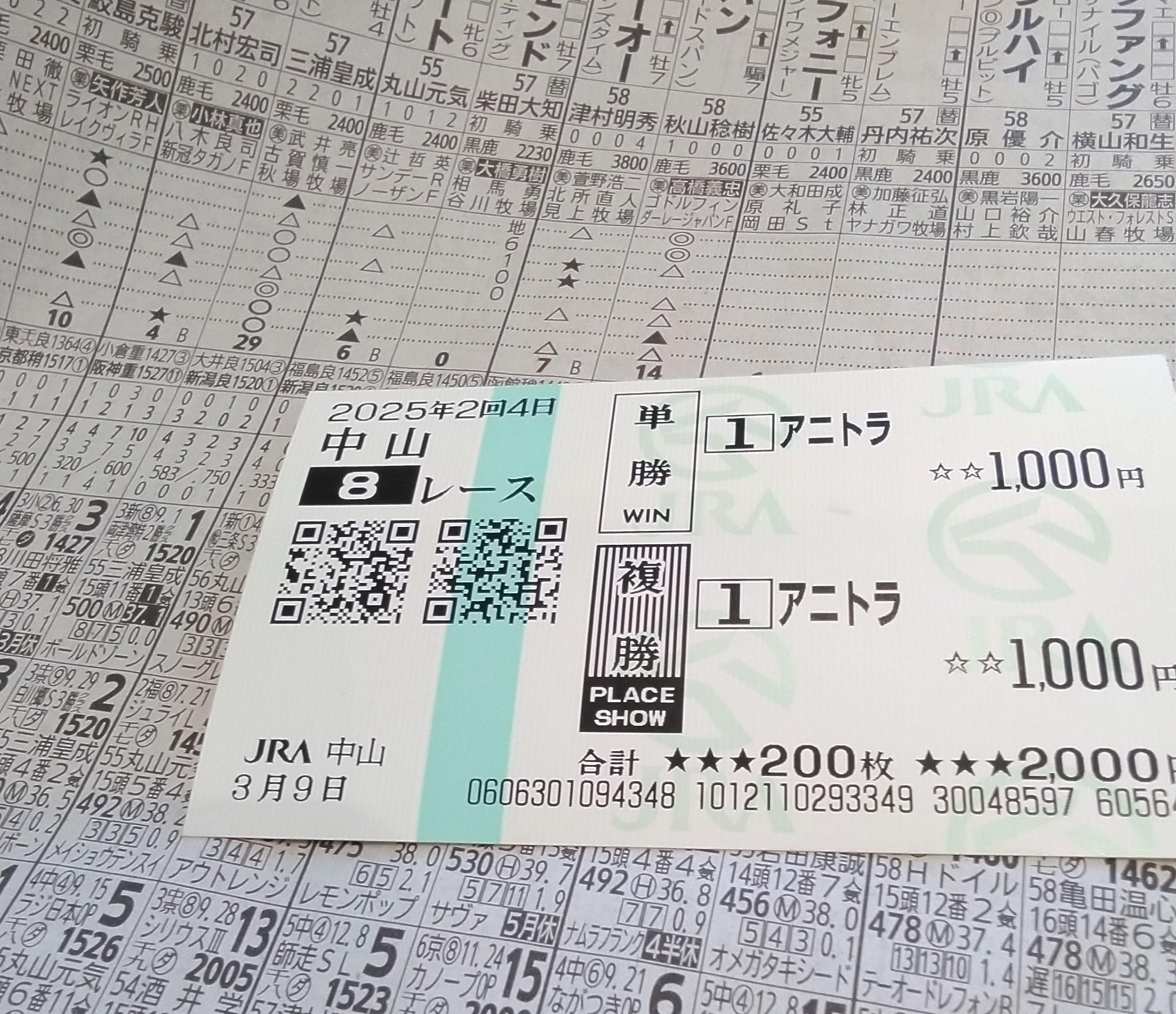 阪神と中山はセンが来たが単勝はハズレ