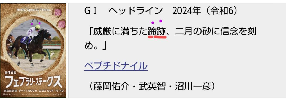 (菜:フェブラリーS考察③ 番外編 https://bbs1.rocketbbs.com/kaigi/posts/21269)