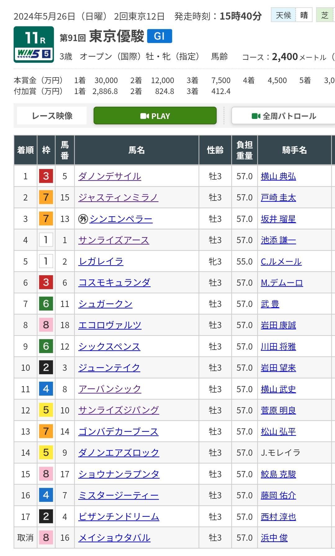 5番のフォーエバーヤングが勝ちました。。。競馬は全世界繋がっている。。。