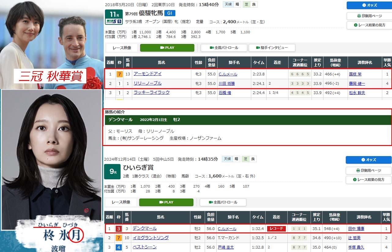 まず、先週に長澤まさみさんと竹内涼真さんが同じ作業服(ツナギ)を着ていることから「同じ職場の同僚」みたいなことを書きましたけど、あの時点で複数の馬の出走予定のあった「音無厩舎」が候補だと思っていて、先週のサザエさんからの