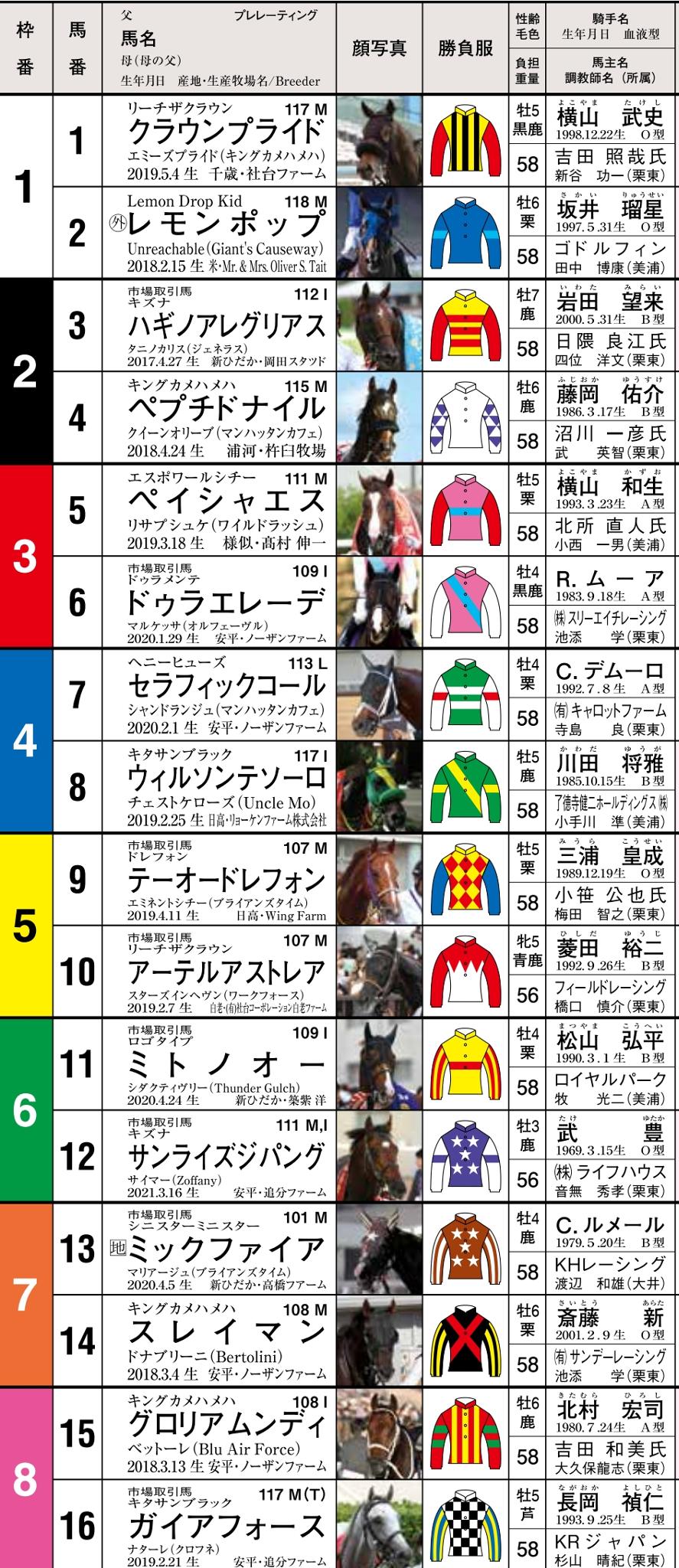 フェブラリーSのポスター9番ペプチドナイルと後ろは11番