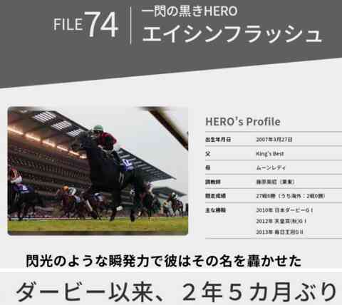 ヘッドラインの『一閃』HEROたちの名場面、【藤原家】のエイシンフラッシュも『一閃』『ゼッケン⑫』。(やってくれますね。)