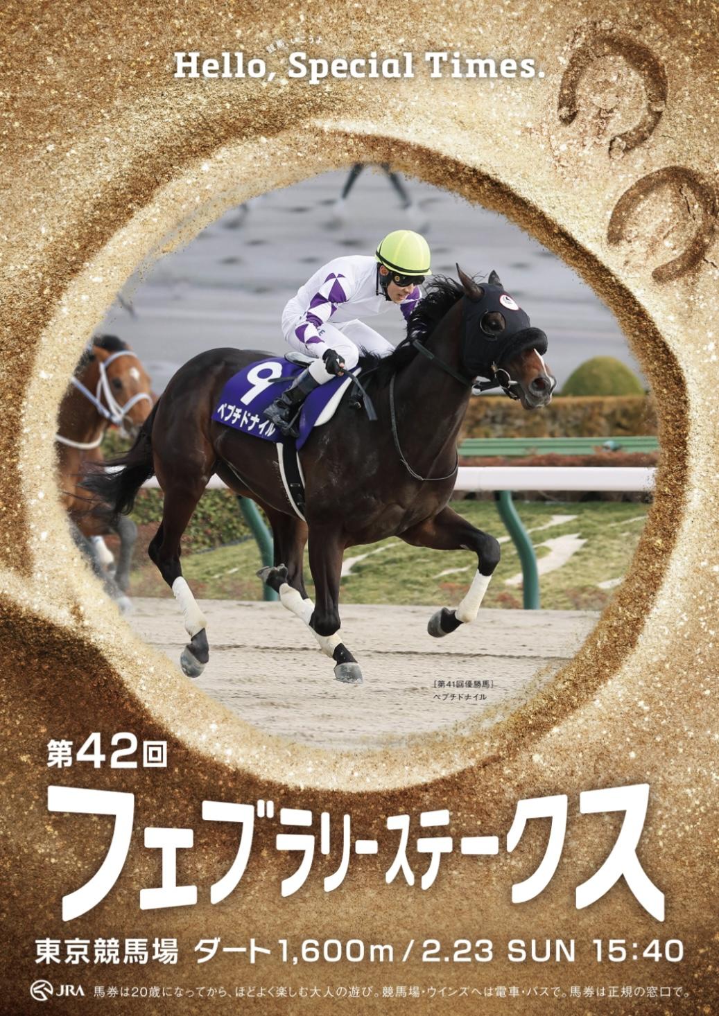 またポスターの「フェブラリーステークス」の文字体の第一印象、以前は良く目にしたグローブやトランクスのメーカーだったんですよ。