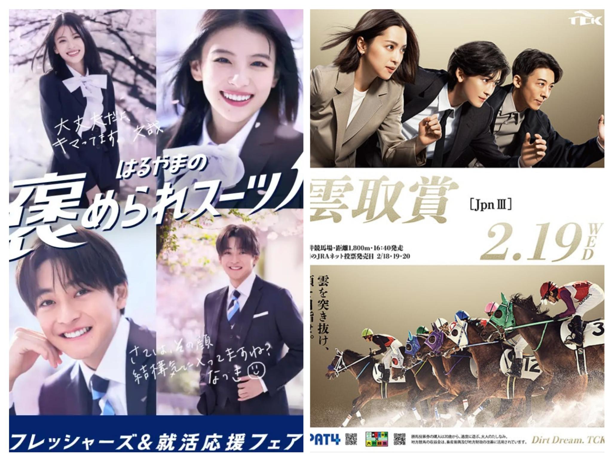 ポスターから3人がスーツ姿で短距離走をしているように見えます。