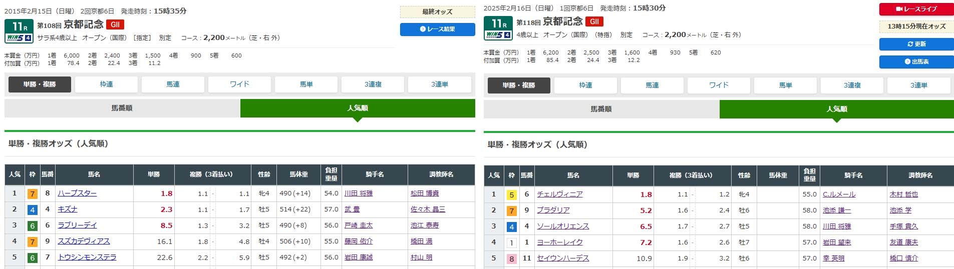 京都記念は4枠に入った川田将雅(現在③人気)1着と読みました。