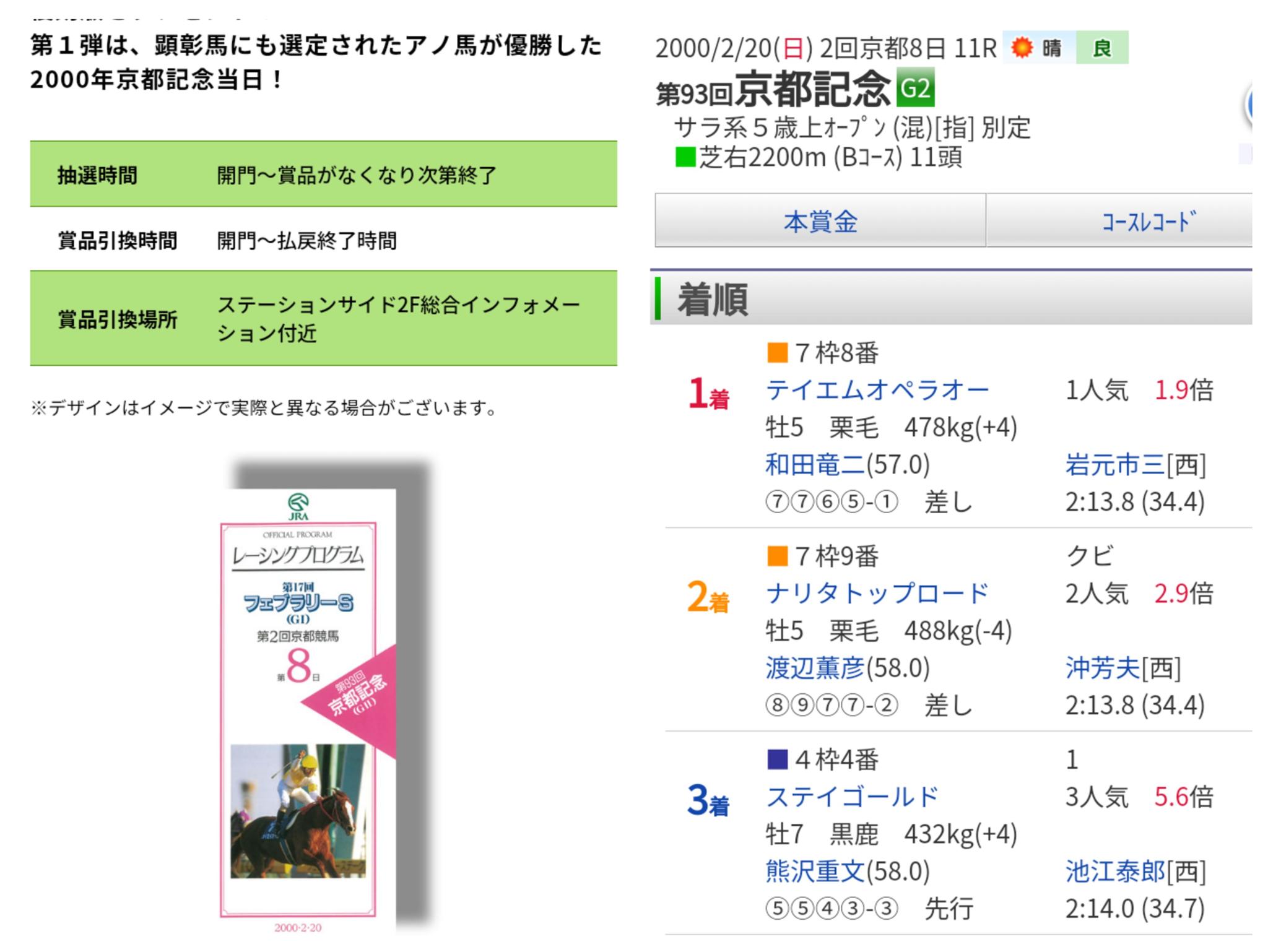 気になるのは2000年のレーシングプログラムの配布ですが当時の結果は