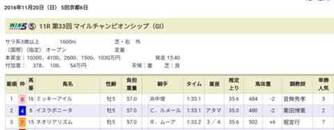 2016年のマイルチャンピオンシップは