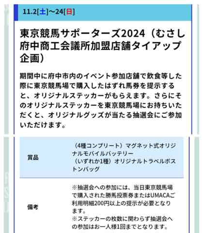 ネタは東京競馬場でやっている「むさし府中商工会議所加盟店舗タイアップ企画」という抽選会から
