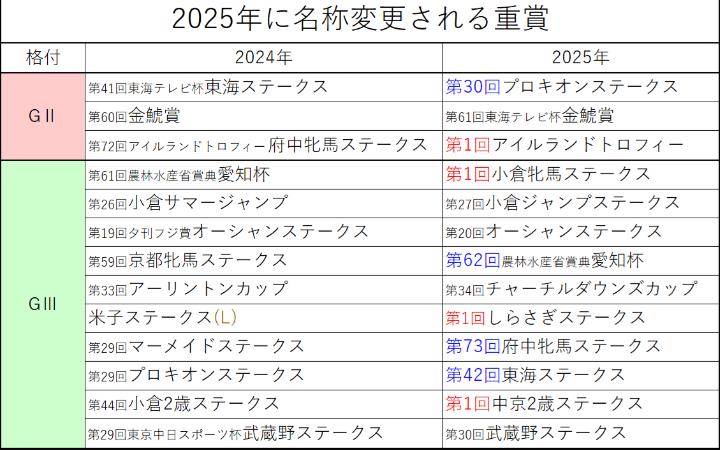 2014年→2025年(馬名は省略)