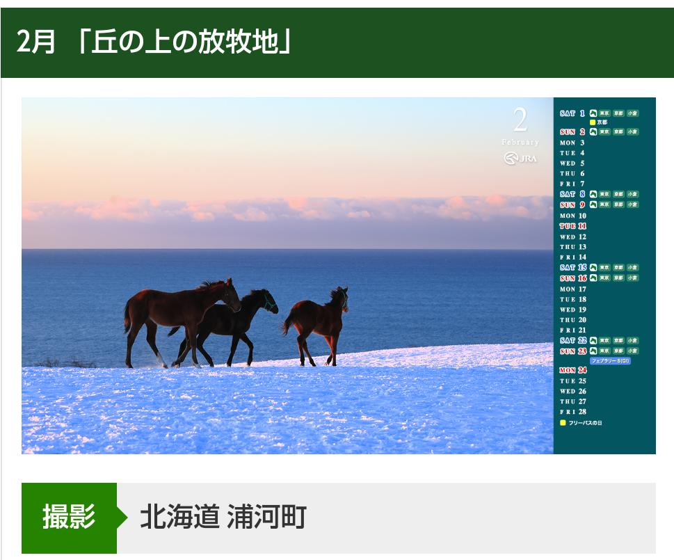 2月の壁紙カレンダーは【浦河】の牧場